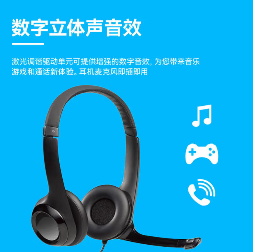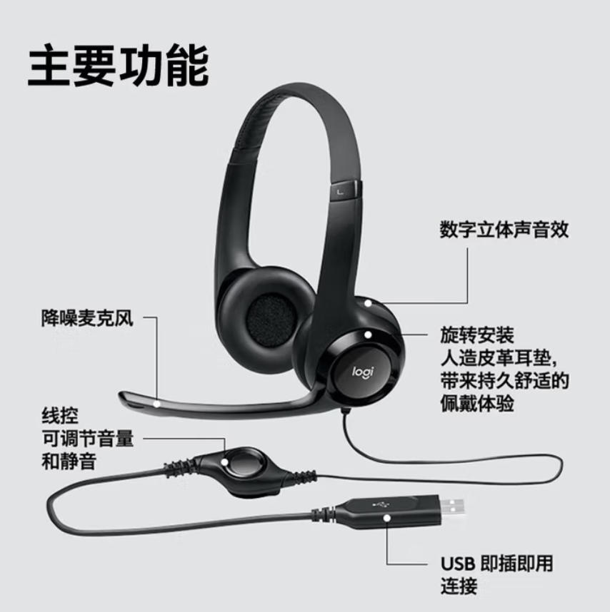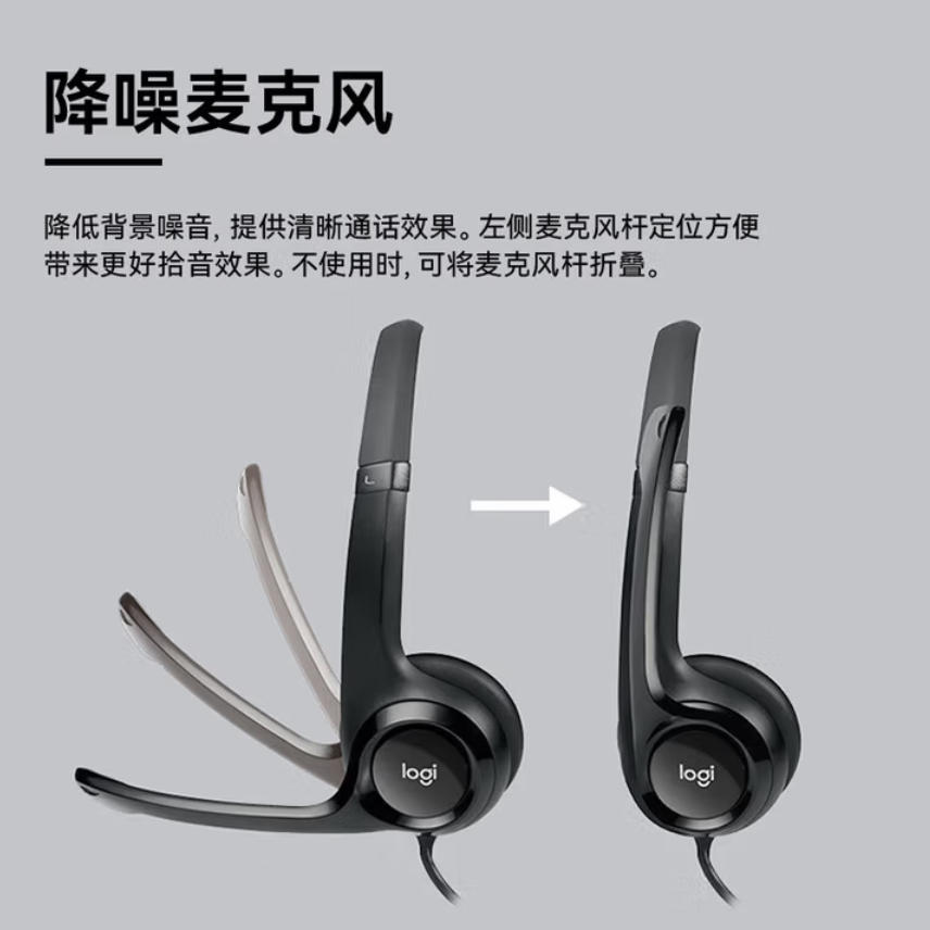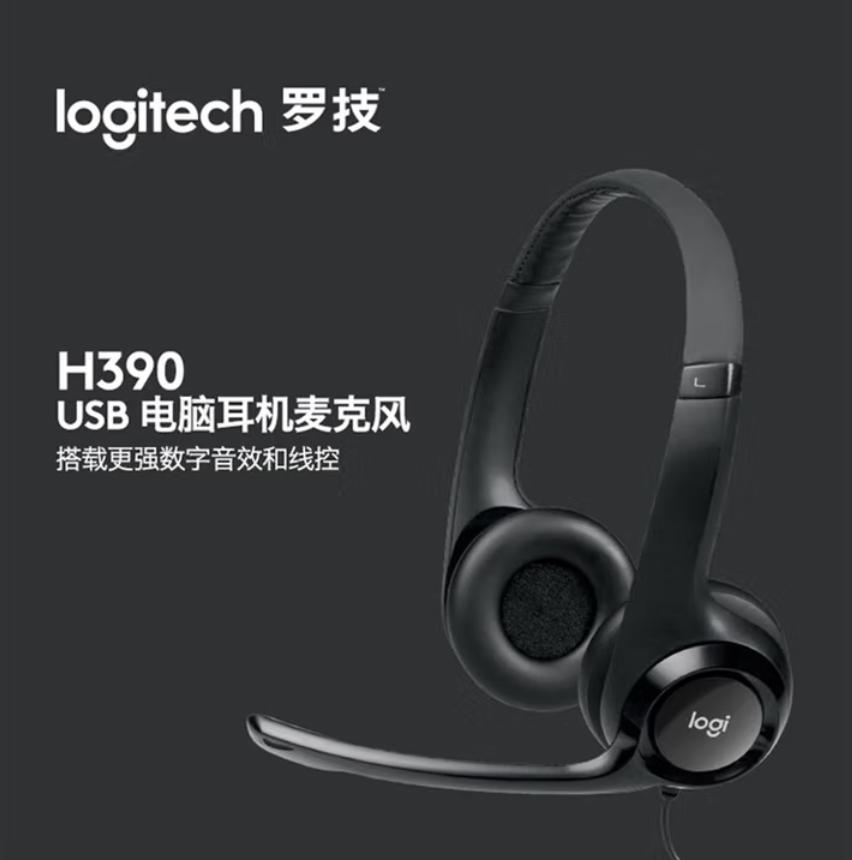 君航科技 logitech 罗技H390 企业级有线耳机耳麦 USB耳机头戴式立体声降噪耳麦笔记本办公 石墨黑 升级版