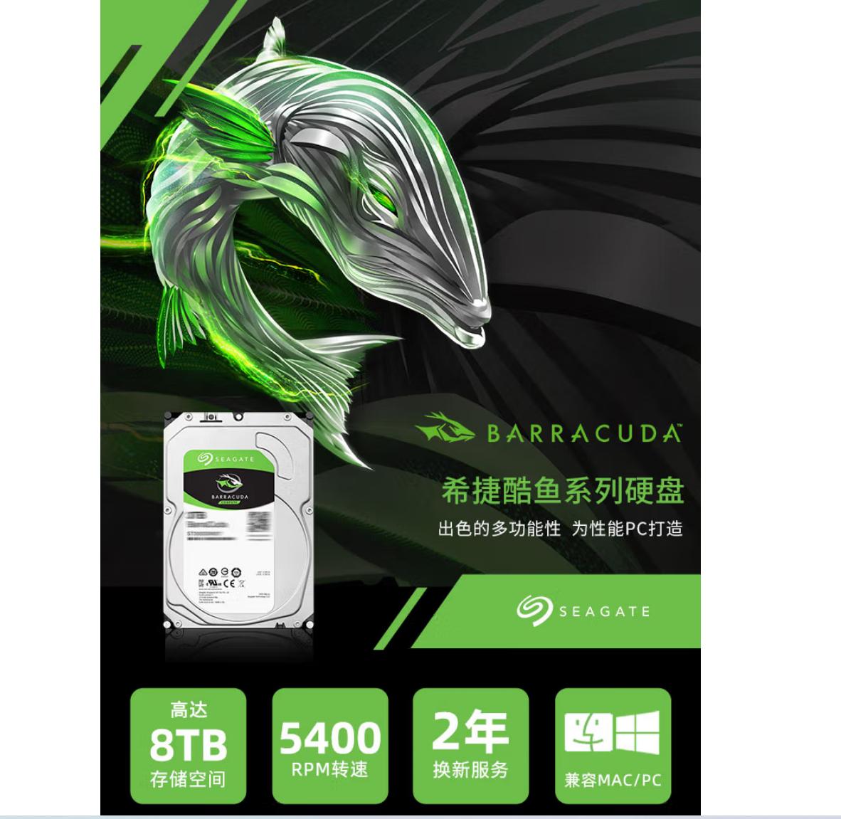 君航科技 希捷(SEAGATE)台式机硬盘 2TB 5400转 256MB 机械硬盘 SATA 希捷酷鱼系列 电脑硬盘 3.5英寸 ST2000DM005