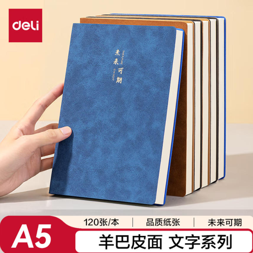 君航科技 得力(deli)皮面本笔记本记事本会议记录本羊巴皮加厚A5/120张单本 BP103蓝色(未来可期)