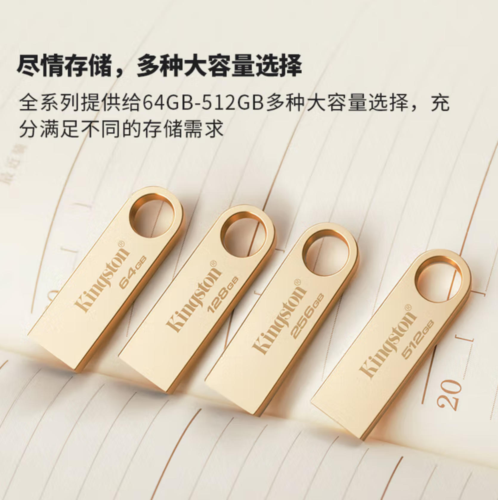 君航科技 金士顿(Kingston)512GB USB3.2 Gen 1 U盘 DTSE9G3 金属U盘 读速220MB/s 写速100MB/s 学习 办公 投标 激光雕刻