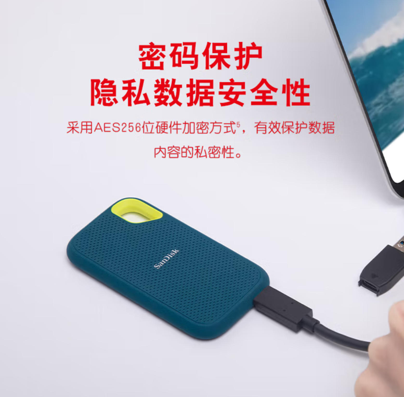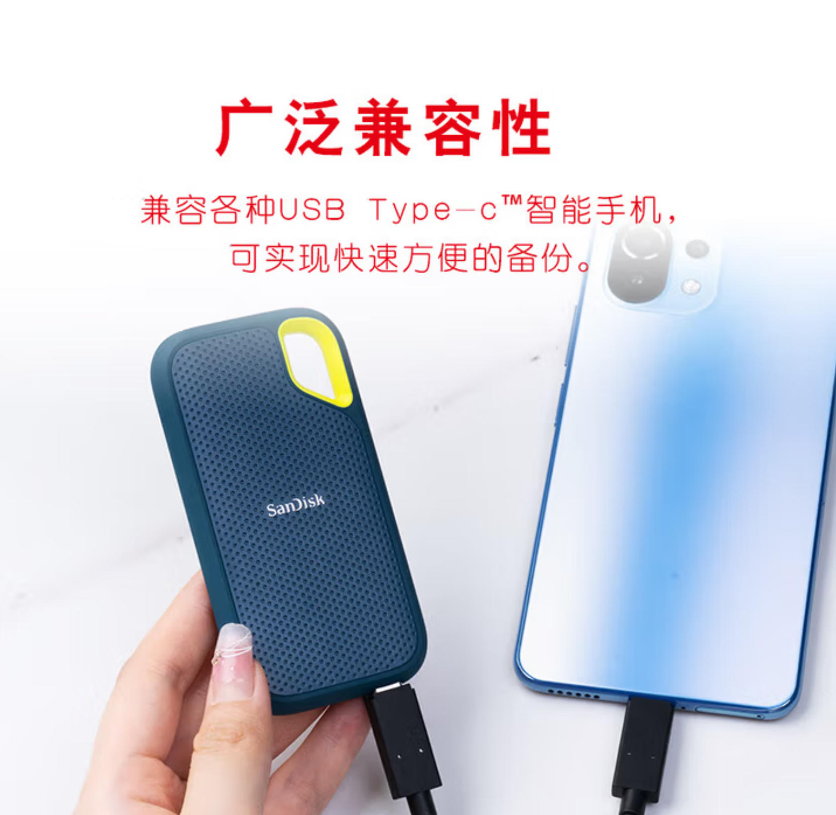 君航科技 闪迪(SanDisk)1TB Nvme移动固态硬盘(PSSD)E61至尊极速卓越版松柏青SSD 读速1050MB/s 手机直连笔记本外接硬盘