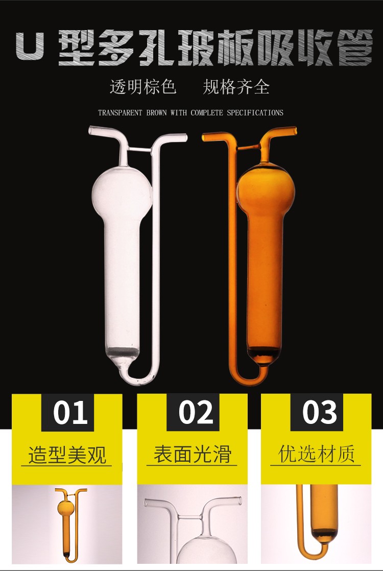 透明棕色U型多孔玻板吸收管10 25 50mlU型吸收瓶甲醛采样瓶大气玻璃空气采集气泡吸收瓶