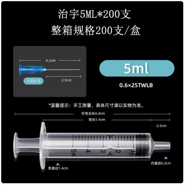 | 商品选择:无菌5ML-带0.6针共200支-盒 | 商品金额:¥85 | 购买数量:1 |