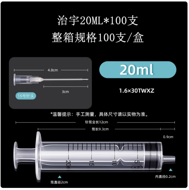| 商品选择:无菌20ML-带1.6mm针共100支-盒 | 商品金额:¥465 | 购买数量:5 |