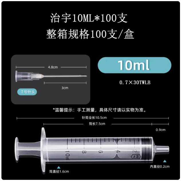 | 商品选择:无菌10ML-带0.7针共100支-盒 | 商品金额:¥650 | 购买数量:10 |