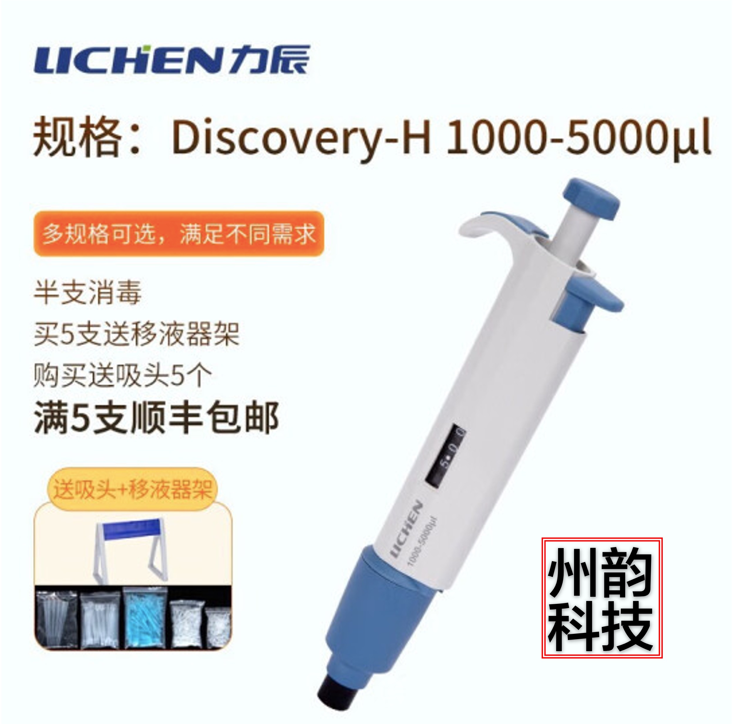 实验室连续数字微量移液器单道移液枪加样器大容量精密测量仪器 升级新款)1000-5000ul半支消毒
