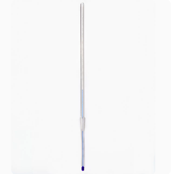 温度计储存必须竖放或横放,严禁倒放,如在物流运输中液体出现断层,可以用酒精灯在顶部烘烧,注意观察红(蓝)液体是否连接(注意:红(蓝)液线不能到顶!)再在底部磨口下面烘烧,在有热气压力的情况下,可以恢复红(蓝)液的断层情况,如斷层严重可多次耒回烘燒,直到斷層连接為止。