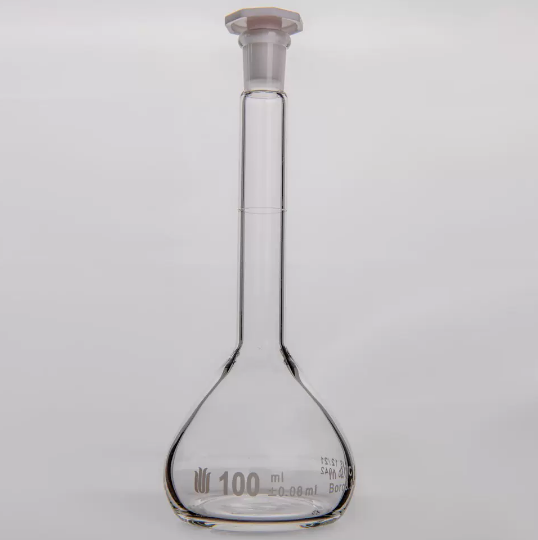 F810100SN 12/21口 透明玻璃100ML容量瓶,标配塑料塞,带个体检测证书,2个/盒