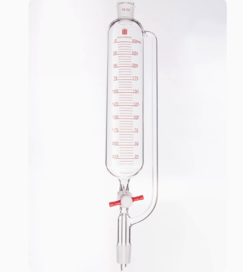 带四氟精细可调节门的恒压滴液漏斗。可通过旋转节门进行粗调,并通过尾部旋钮进行微调。这种精细可调节门可以更好的控制流速,流量,防止加入液体反应过快。