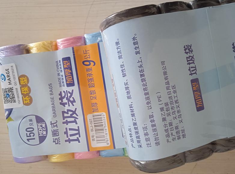 商品简介 保洁袋,清洁袋,点断式垃圾袋,平口45*50cm,5卷每袋装 ,约150只,颜色随机。