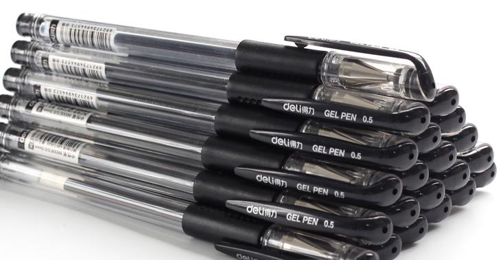 商品简介 中性笔,拔冒式,得力中性笔碳素笔0.5mm办公水性笔,黑色,12支每盒装。其他颜色请联系客服备注。