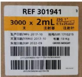 BD 碧迪一次性使用无菌注射器(带针)2ML 25G 货号301941 带针 0.5*25mm