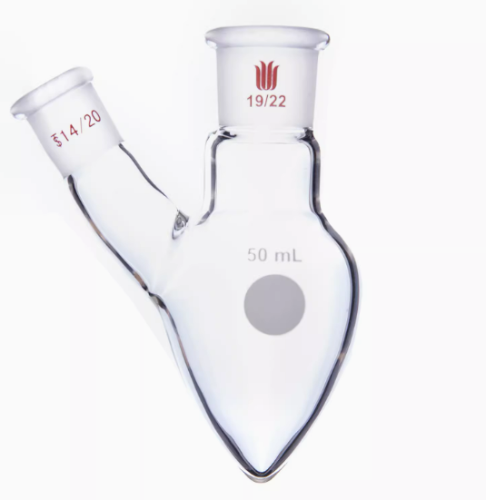 F341950 两口鸡心瓶,中间磨口:19/22,侧磨口:14/20,50ml