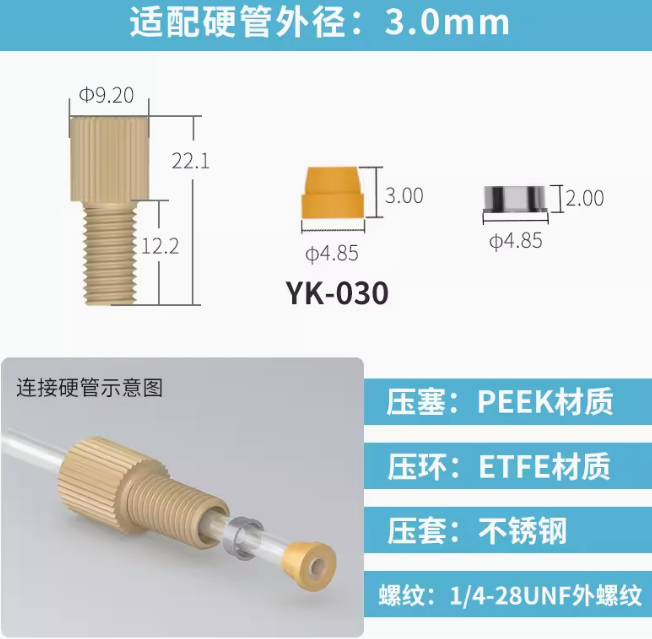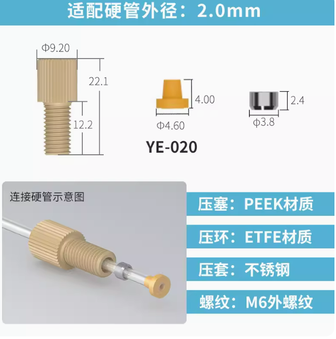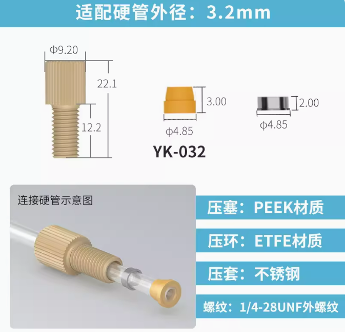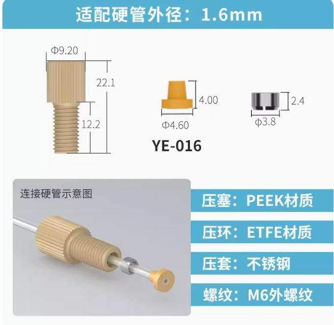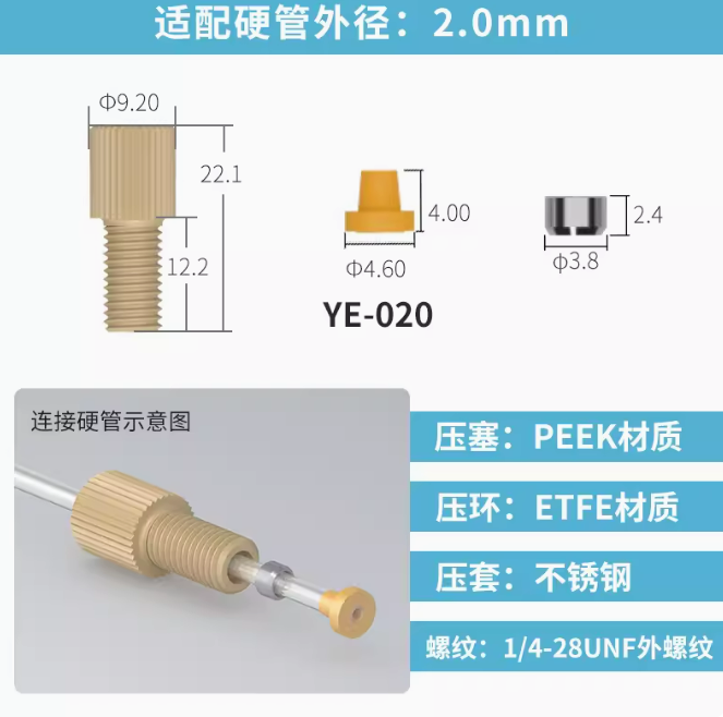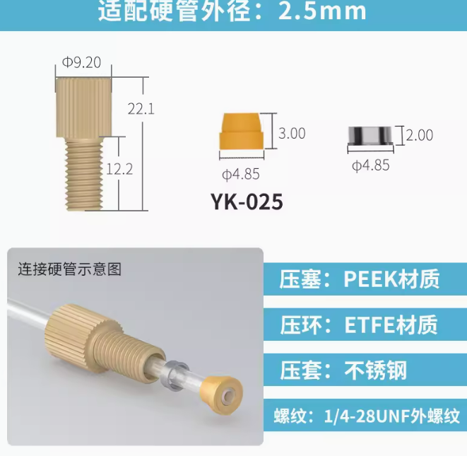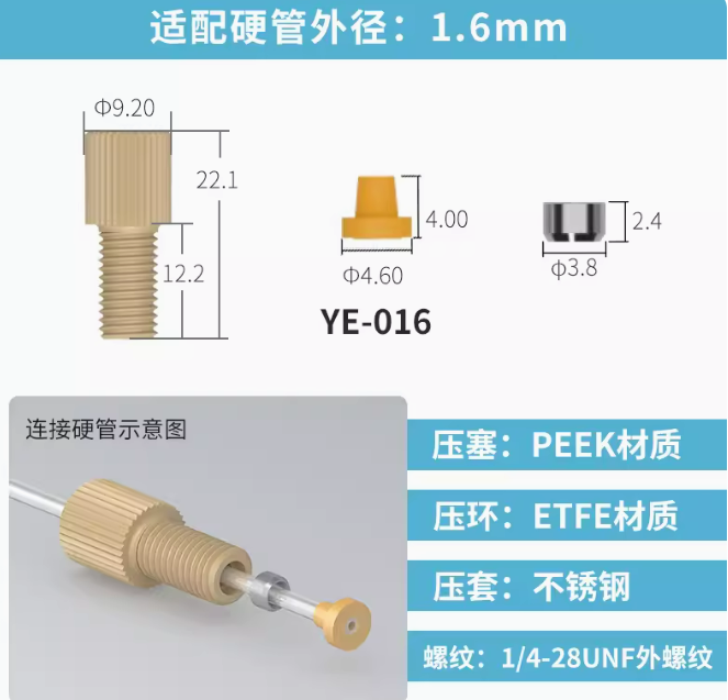 peek套管接头1/4-28unf岛津安捷伦刃环接头 液相色谱仪m6倒锥接头 刃环接头-1个