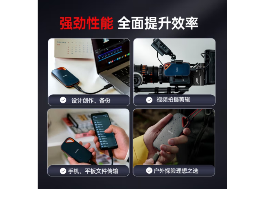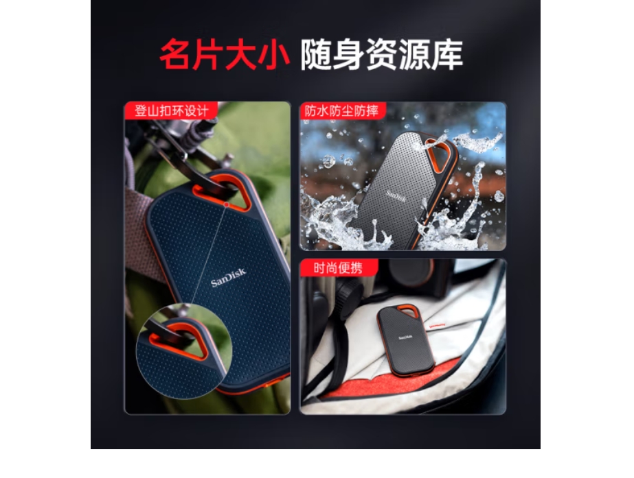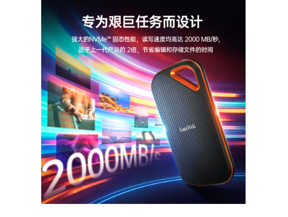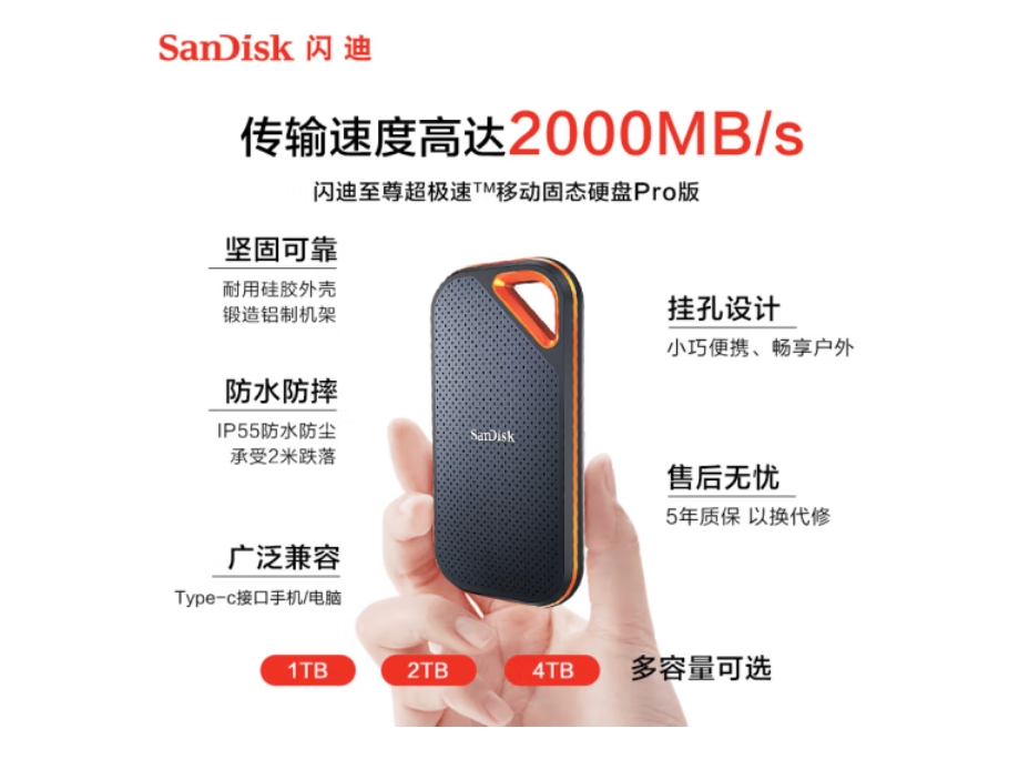 云栖漫心 闪迪(SanDisk)1TB 移动固态硬盘(PSSD)E81至尊超极速Pro版 传输速度2000MB/秒 兼容Type-c手机平板电脑 另有2T 4T
