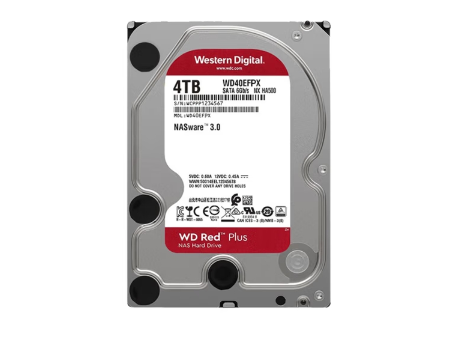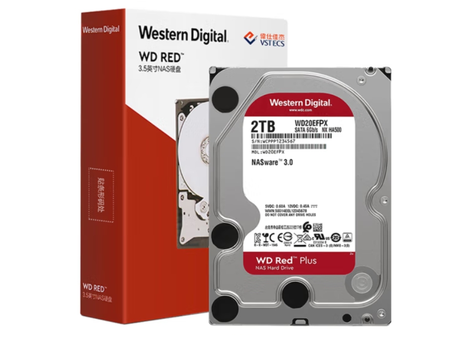 云杉生物 西部数据(WD)NAS机械硬盘 WD Red Plus 西数红盘 2TB 5400转 64MB 4TB 5400转 256MB SATA CMR 网络存储 3.5英寸 WD20EFPX WD40EFPX