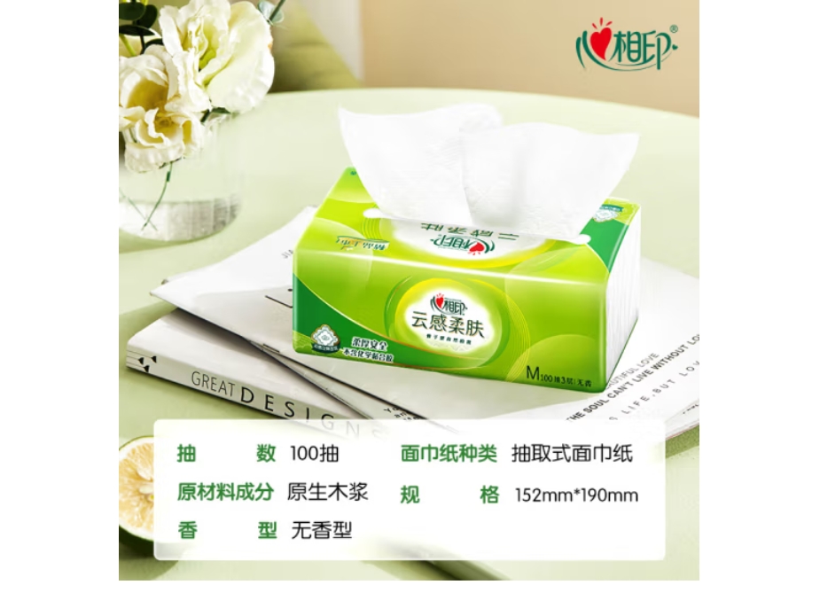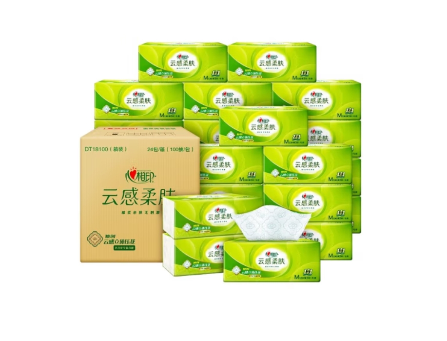 云杉生物 心相印 抽纸 云感柔肤 真M码3层100抽*24包 纸巾(整箱销售)