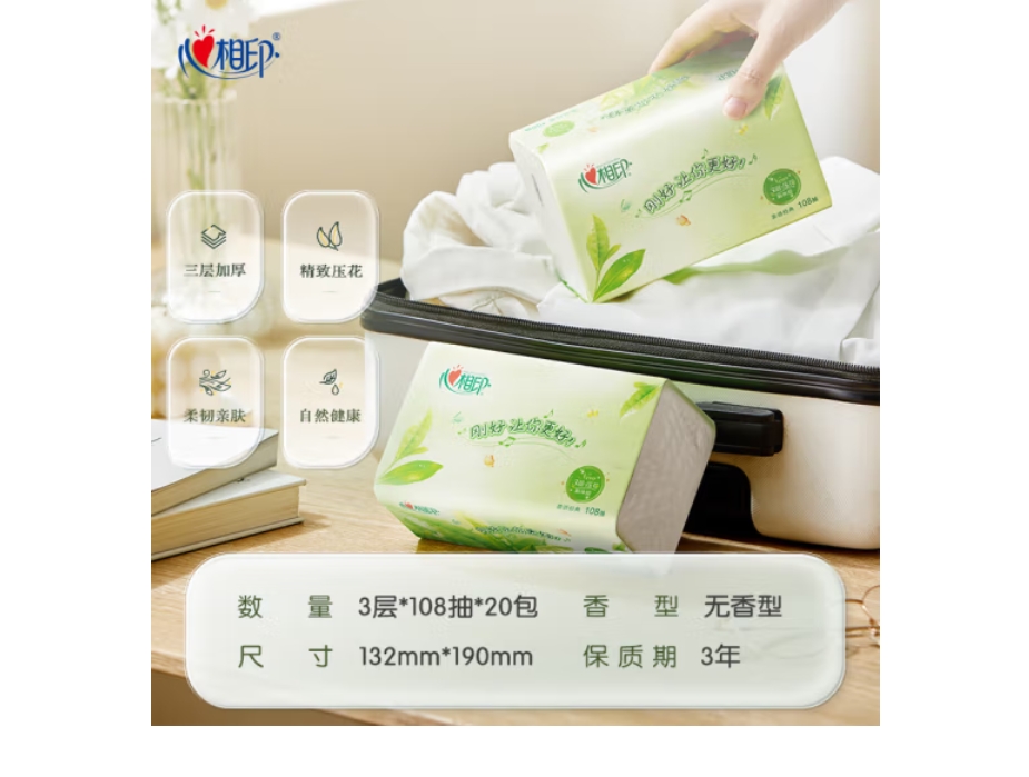 云杉生物 心相印 抽纸 茶语系列3层108抽纸面巾 S码20包 (整箱销售)