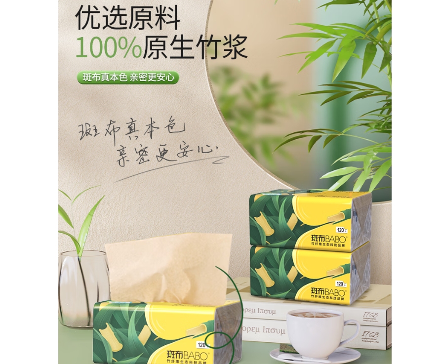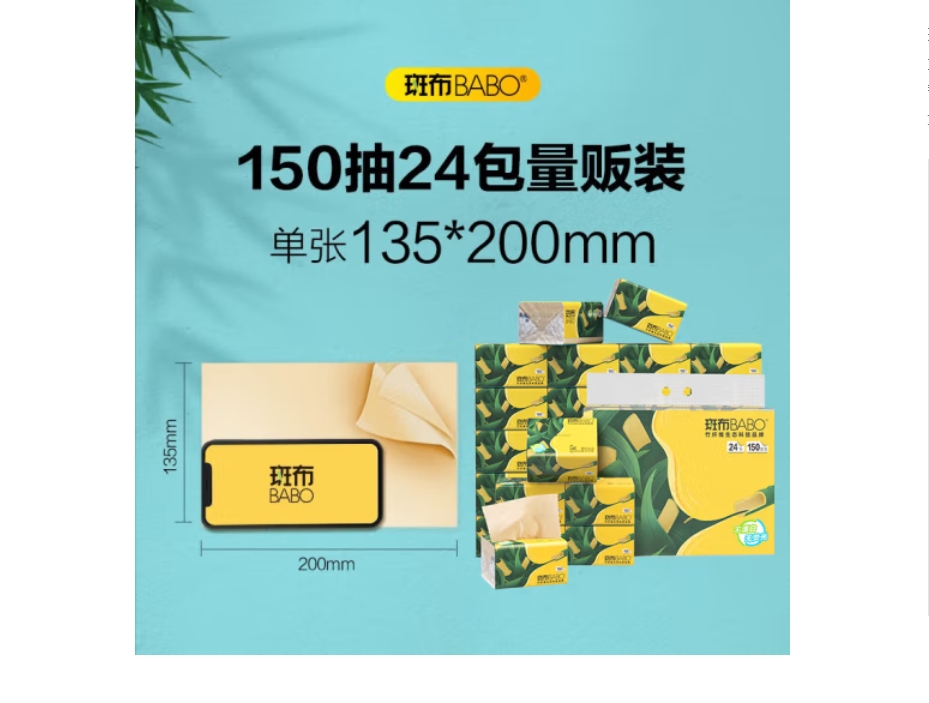 云杉生物 斑布 抽纸 3层150抽*24包 加大S码 实验室擦拭 原生竹浆 纸巾 卫生纸 餐巾纸