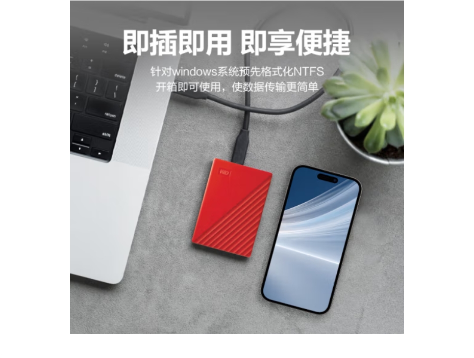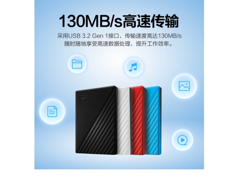 云栖漫心 西部数据(WD)1TB 2TB 4TB 5TB 移动硬盘 USB3.0 My Passport随行版2.5英寸 黑 机械硬盘 手机笔记本电脑外接 家庭存储