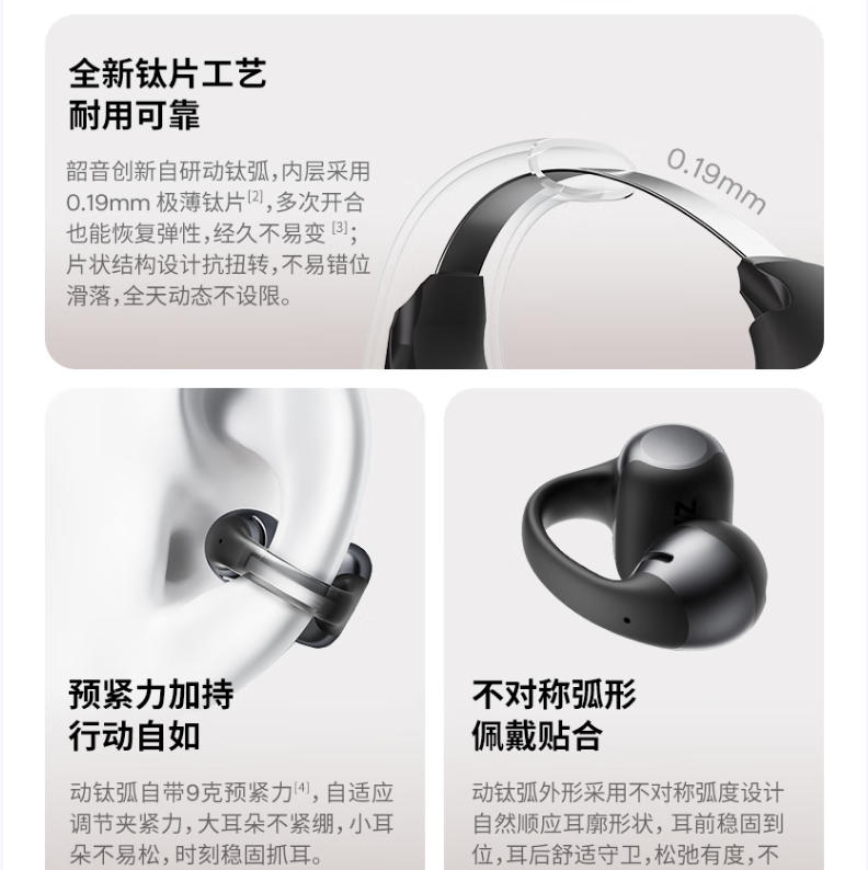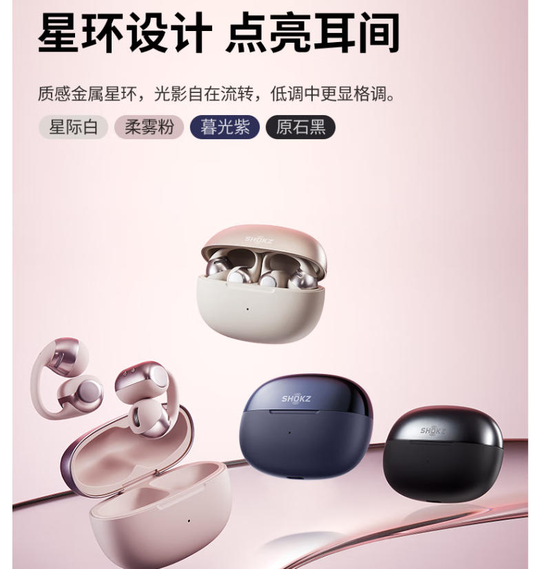 云栖漫心 韶音(SHOKZ)OpenDots ONE动钛圈开放式蓝牙耳机耳夹式耳机蓝牙跑步运动适用于华为E310金榜联名款 暮光紫 星际白 原石黑 柔雾粉