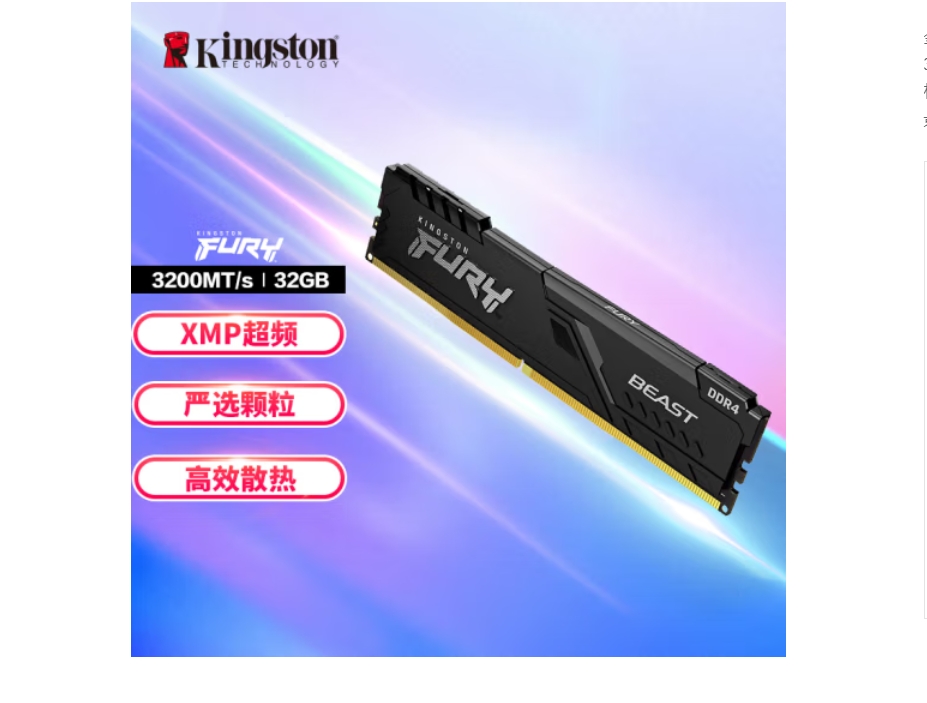 云栖漫心 金士顿(Kingston)FURY 16GB DDR4 3200 C16 台式机 内存条 Beast野兽系列 骇客神条 另有32G