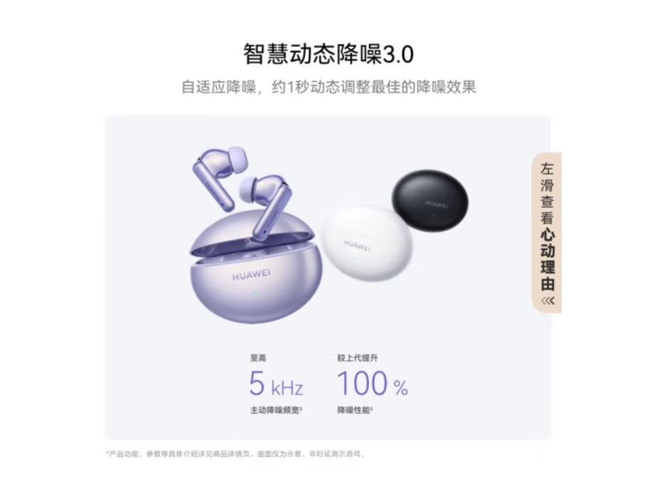 云栖漫心 华为FreeBuds 6i 真无线 降噪 蓝牙耳机 旗舰级降噪深度 安卓/苹果手机通用 幻夜黑 天际白 流光紫