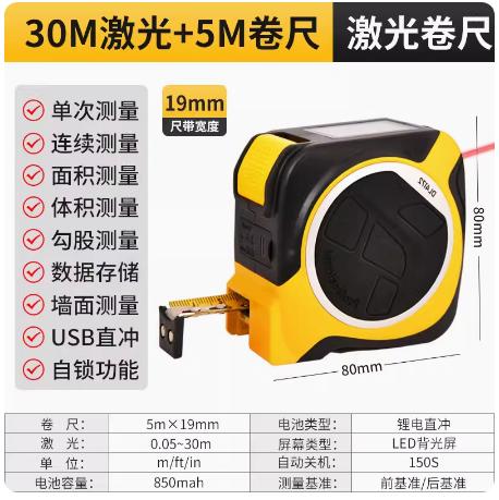 得力激光卷尺红外线测距仪电子测量尺子智能数显卷尺三合一