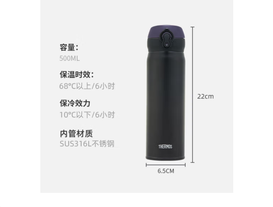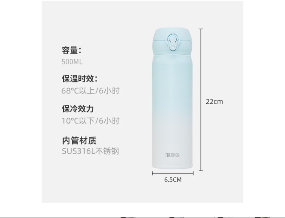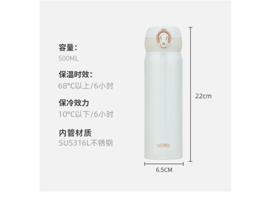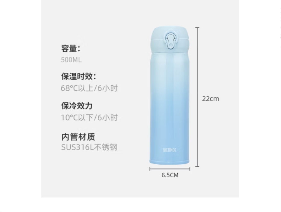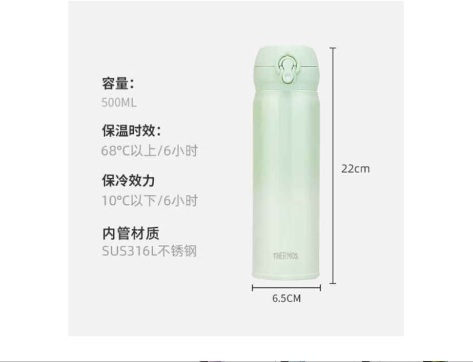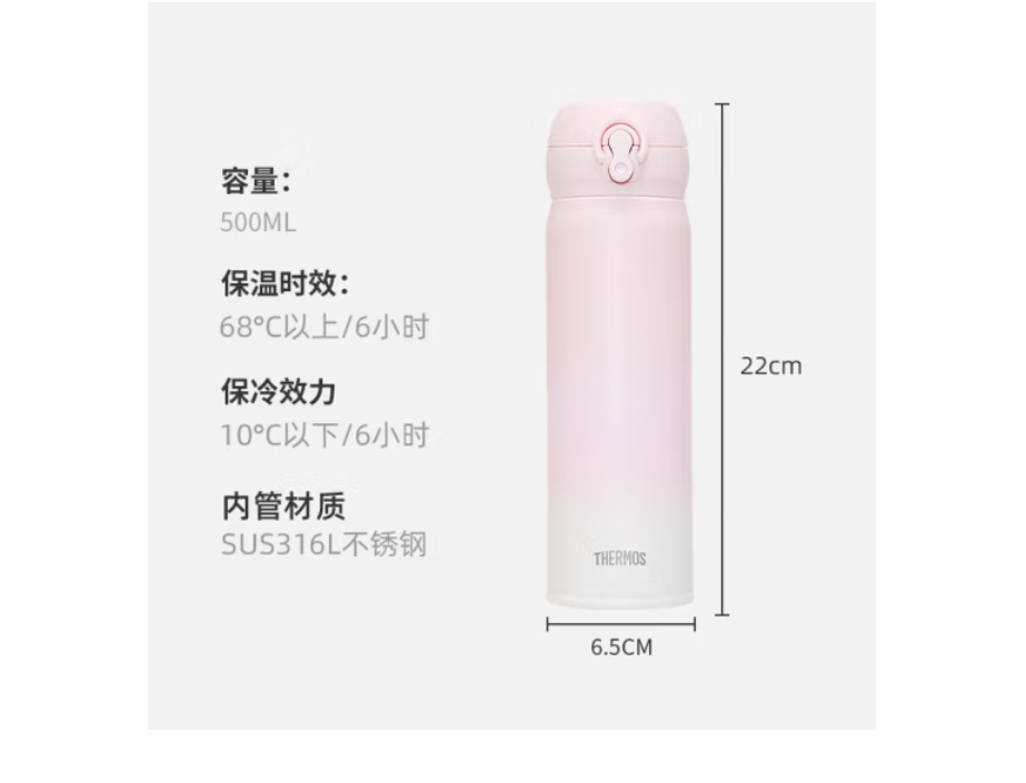 云杉生物 膳魔师(THERMOS)保温杯 316钢 500ml 保冷水杯子 JNL-500S 象牙白 初桃粉 冰川蓝 暗夜黑 渐变海洋蓝 青草绿