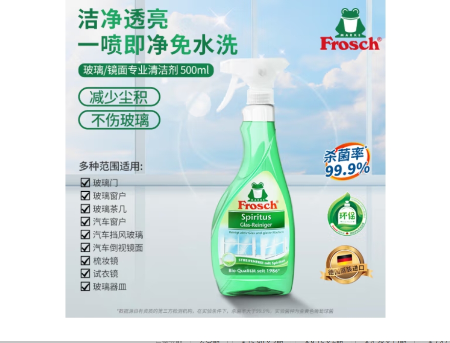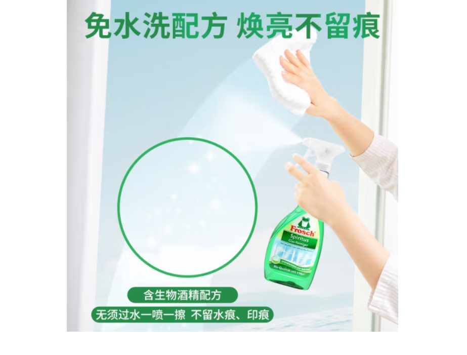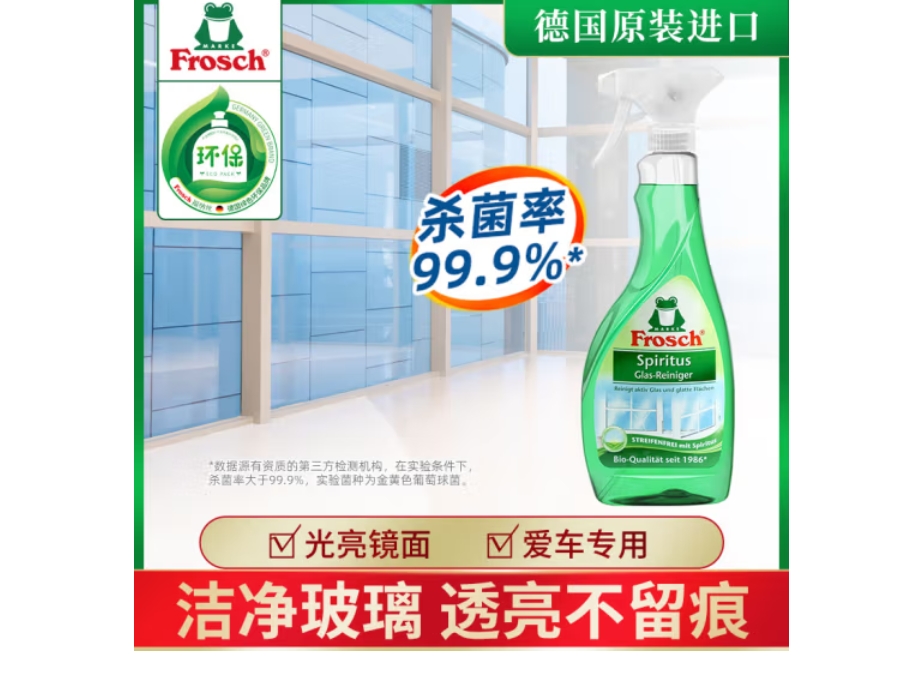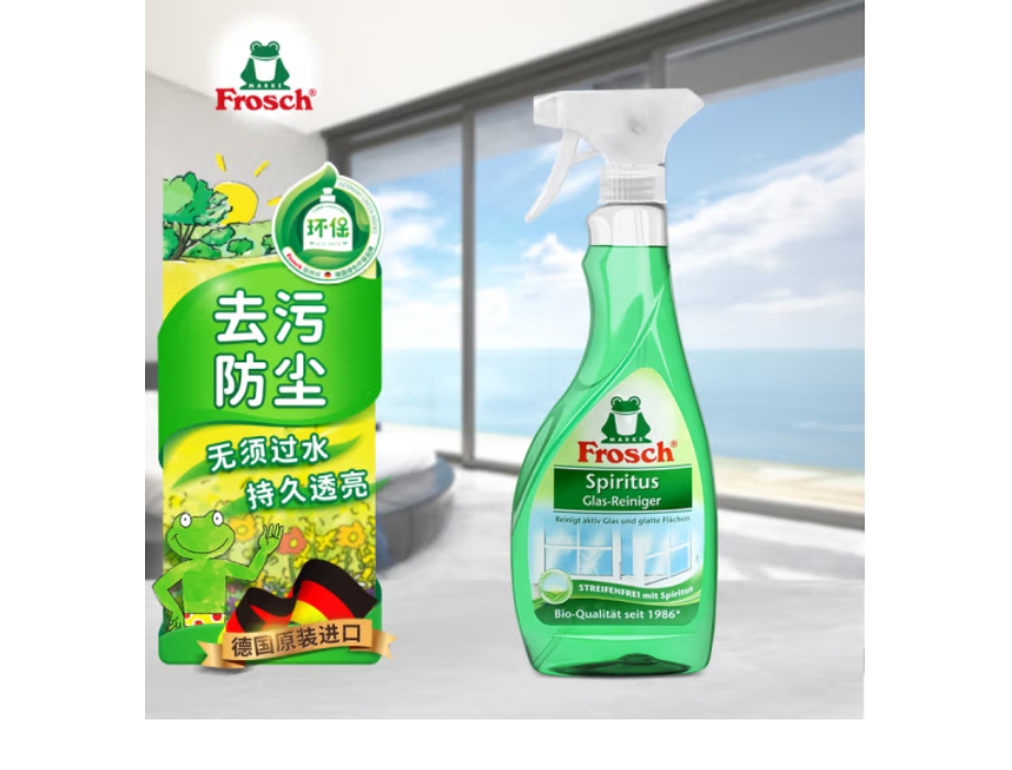 云栖漫心 Frosch 玻璃 玻璃器材 玻璃仪器 镜面专业清洁喷剂 玻璃水 雨刮水 玻璃液500ml 德国原装进口