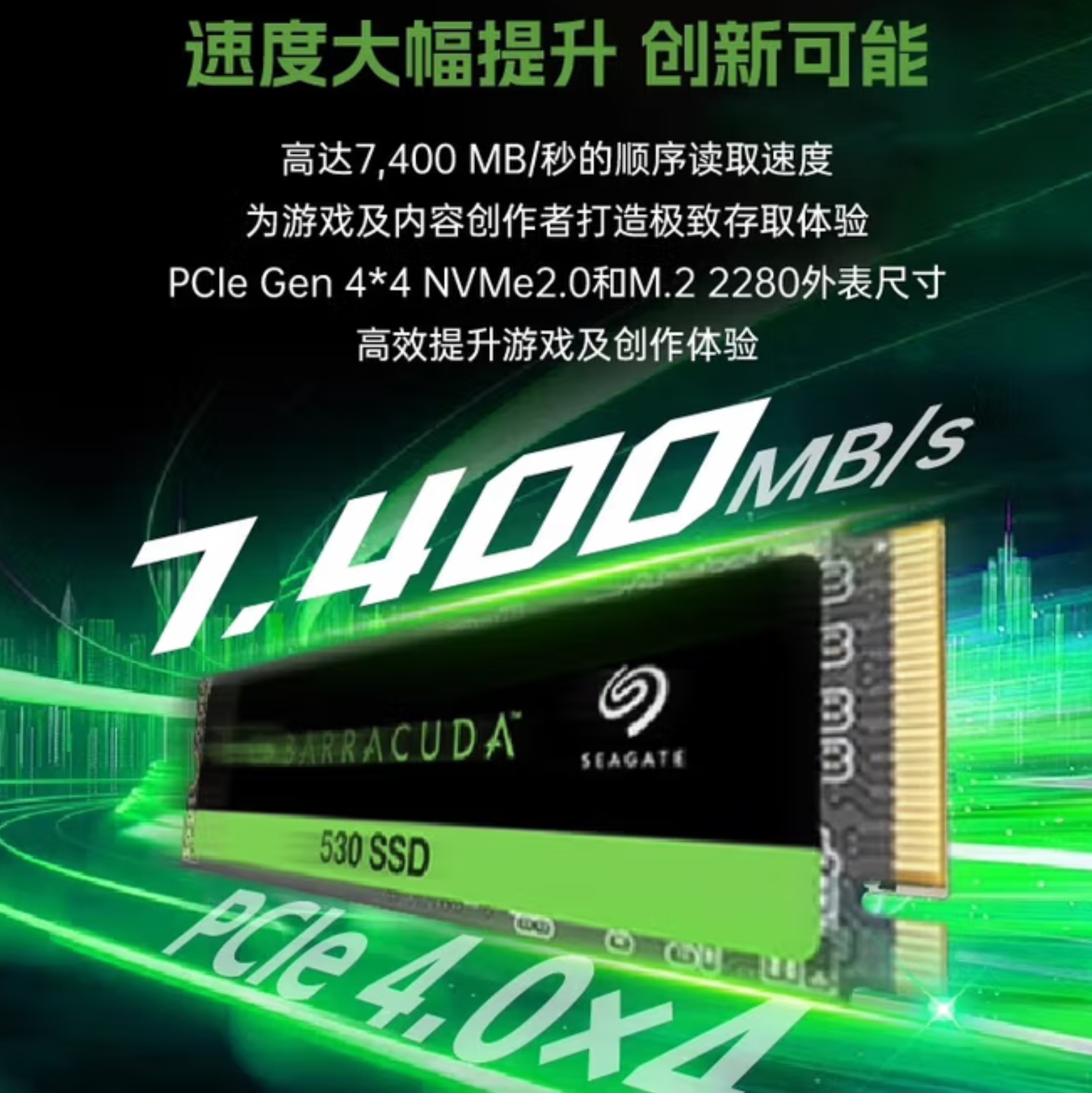 云杉生物 希捷(SEAGATE)1TB 1TB SSD固态硬盘 M.2 NVMe PCIe4.0×4 读速高达7400MB/s 希捷酷鱼530 ZP1024CM3A003