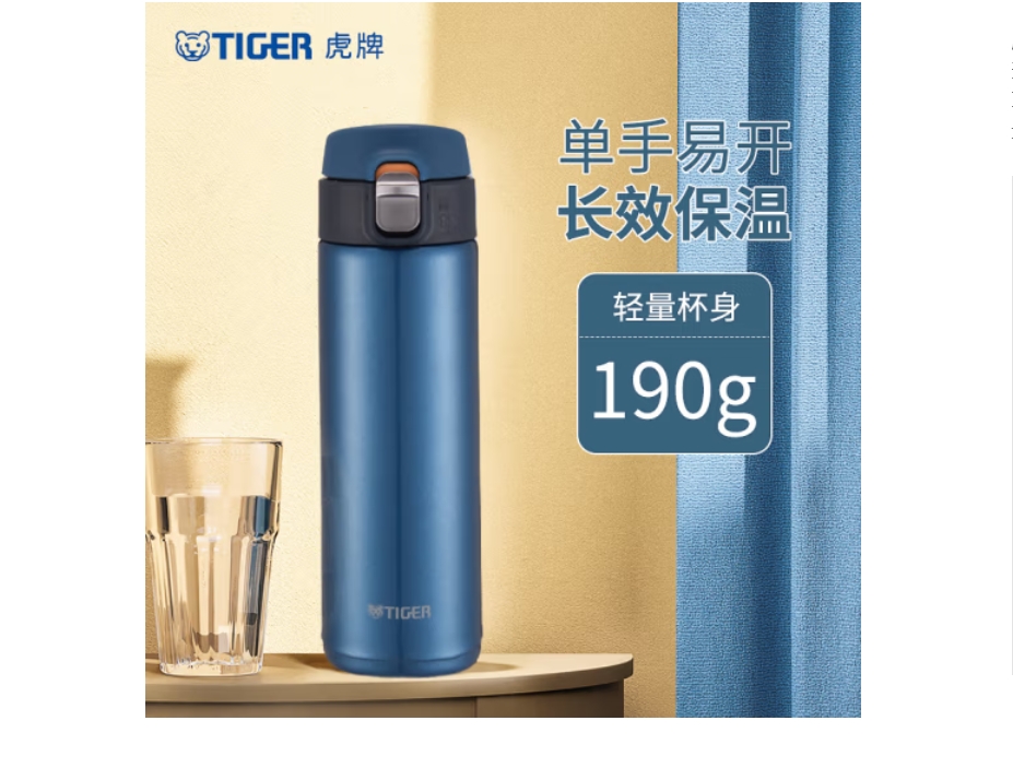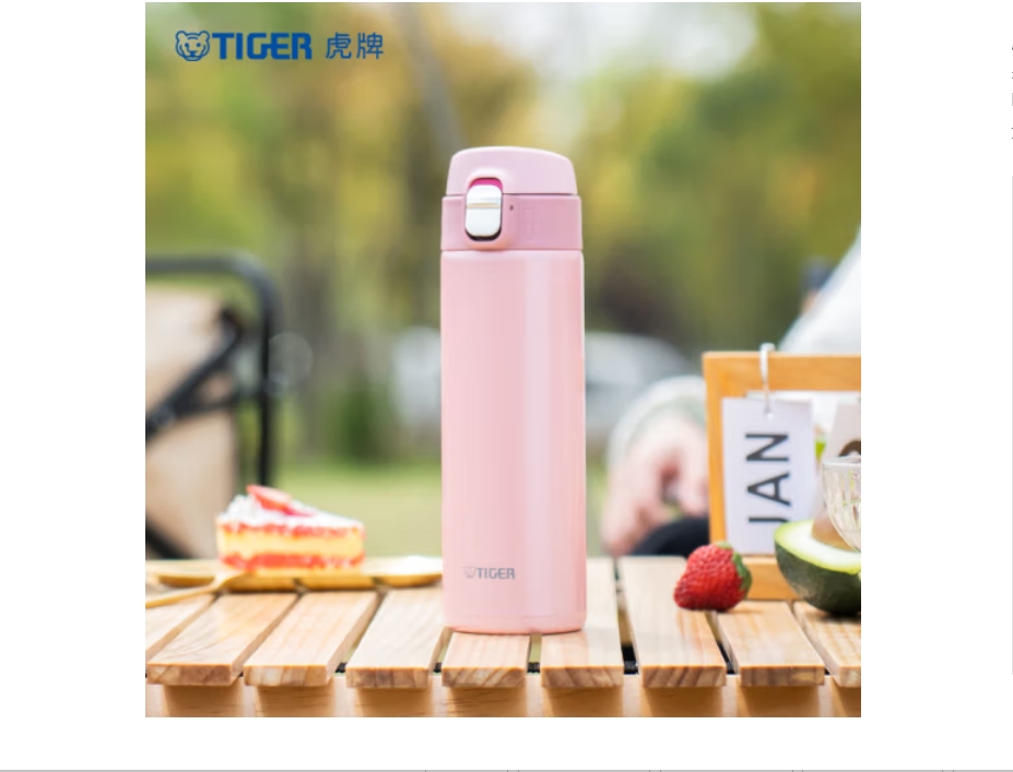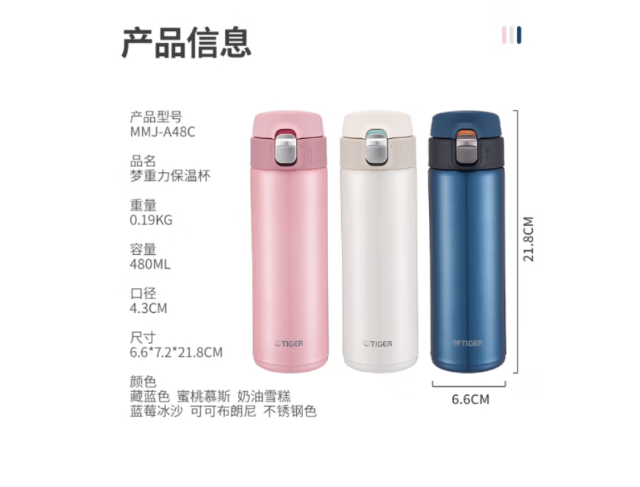 云杉生物 虎牌(TIGER)保温杯 一键开启 弹盖水杯 MMJ-A48C-AM 蓝莓冰沙 白色 粉色 480ml