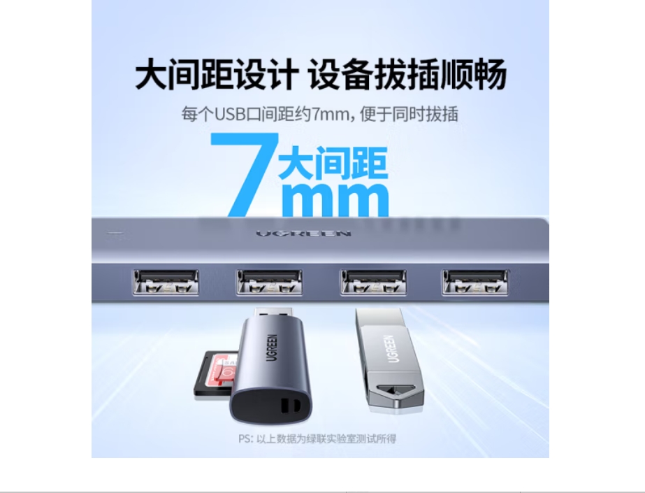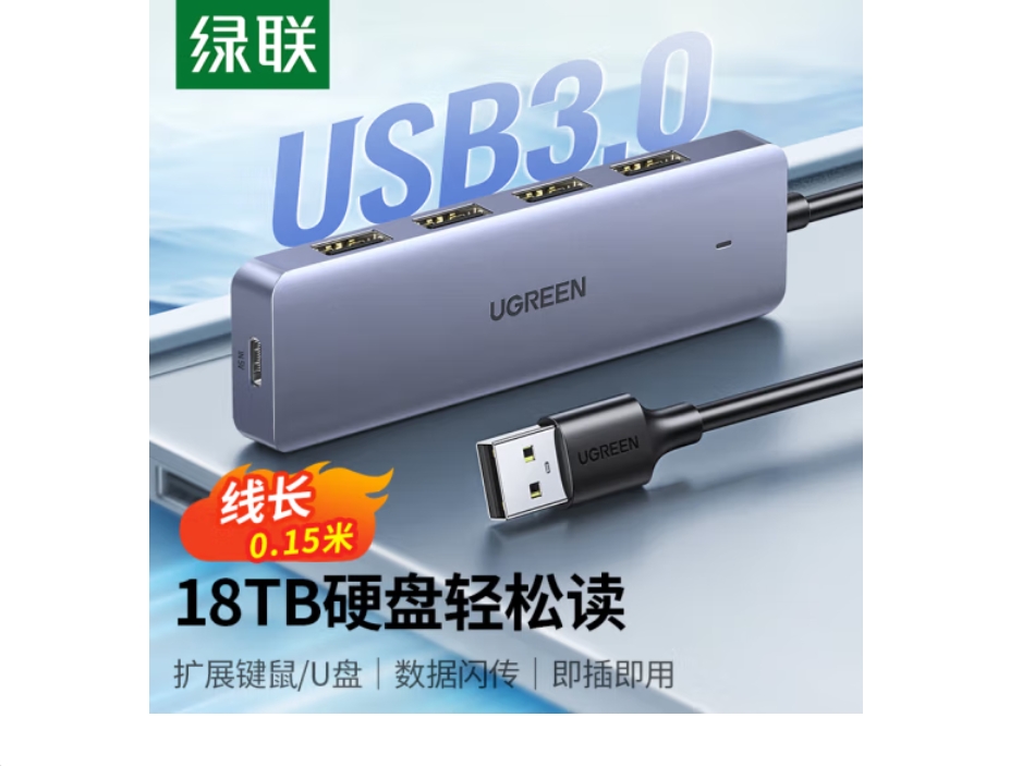 云杉生物 绿联(UGREEN) USB3.0分线器扩展坞 高速4口集线器HUB拓展坞 笔记本电脑一拖多转换器转接头延长线 Type-C供电