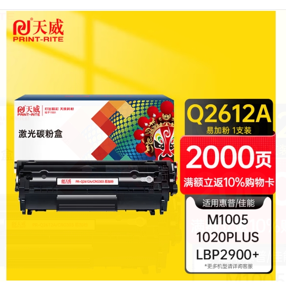 天威 2612a硒鼓 12a易加粉 适用惠普m1005硒鼓1020 q2612a hp 1020plus墨粉 佳能lbp2900打印机墨盒
