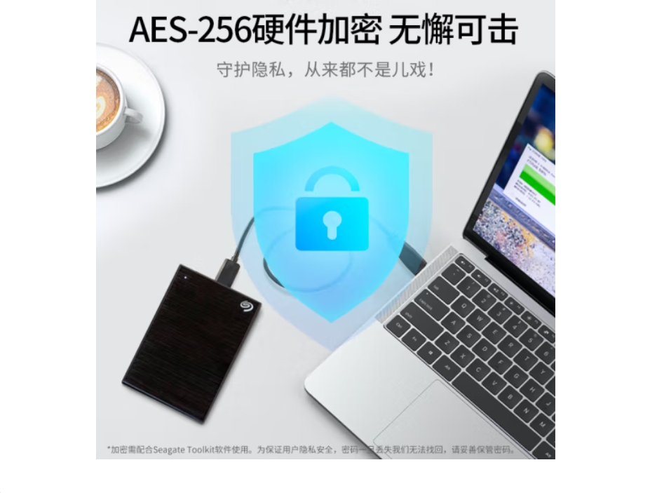 云杉生物 希捷(SEAGATE)移动硬盘 1TB 2TB 4TB 5TB 加密 USB3.0高速 希捷铭2.5英寸 黑 机械硬盘 便携 办公 学习 保护隐私