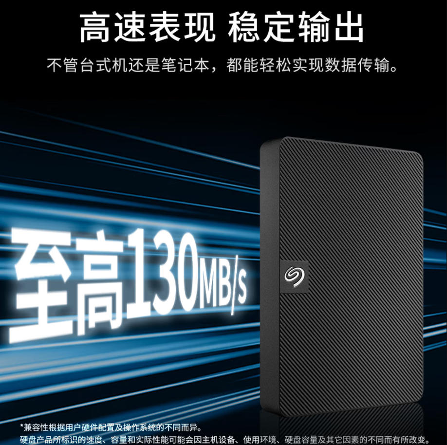 君航科技 希捷(SEAGATE)移动硬盘 2TB USB3.0高速 希捷睿翼 2.5英寸 机械硬盘 黑 便携外接存储办公学习
