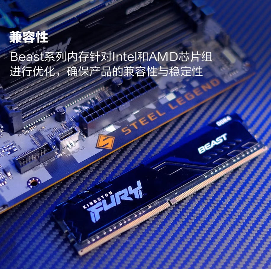君航科技 金士顿(Kingston)FURY 16GB(8G×2)套装 DDR4 3200 3600 台式机内存条 Beast野兽系列 骇客神条