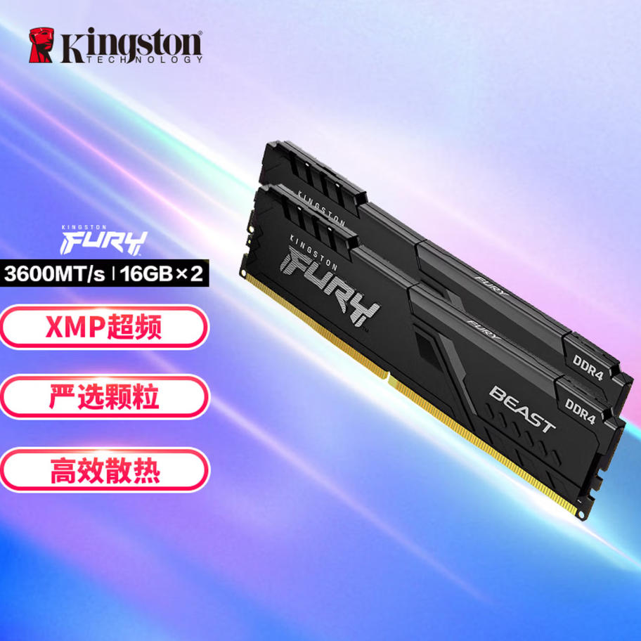 君航科技 金士顿(Kingston)FURY 32GB(16G×2)套装 DDR4 3200 3600 台式机内存条 Beast野兽系列 骇客神条