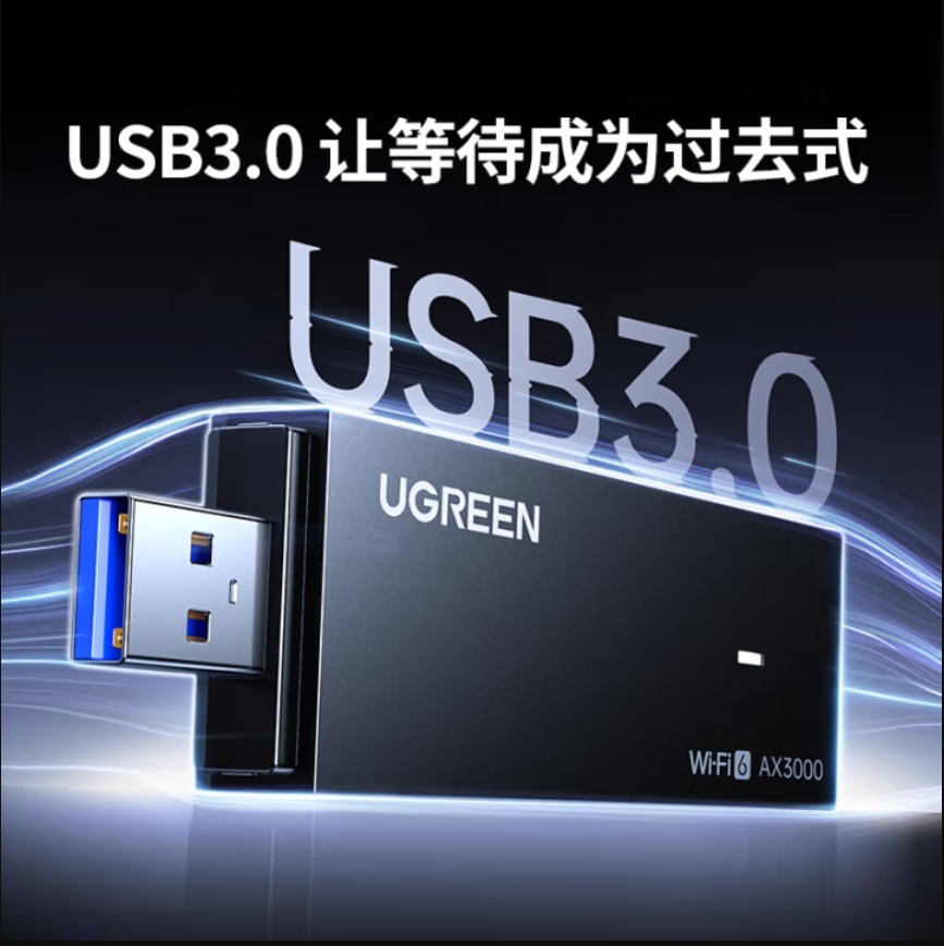 云栖漫心 绿联 USB无线网卡WiFi6 智能免驱AX3000 双频5G网卡 台式机专用WiFi接收器主机网络发射器
