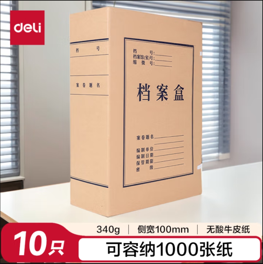 云栖漫心 得力 (deli)10只100mmA4牛皮纸档案盒文件盒 文件资料收纳盒 5695 加厚款