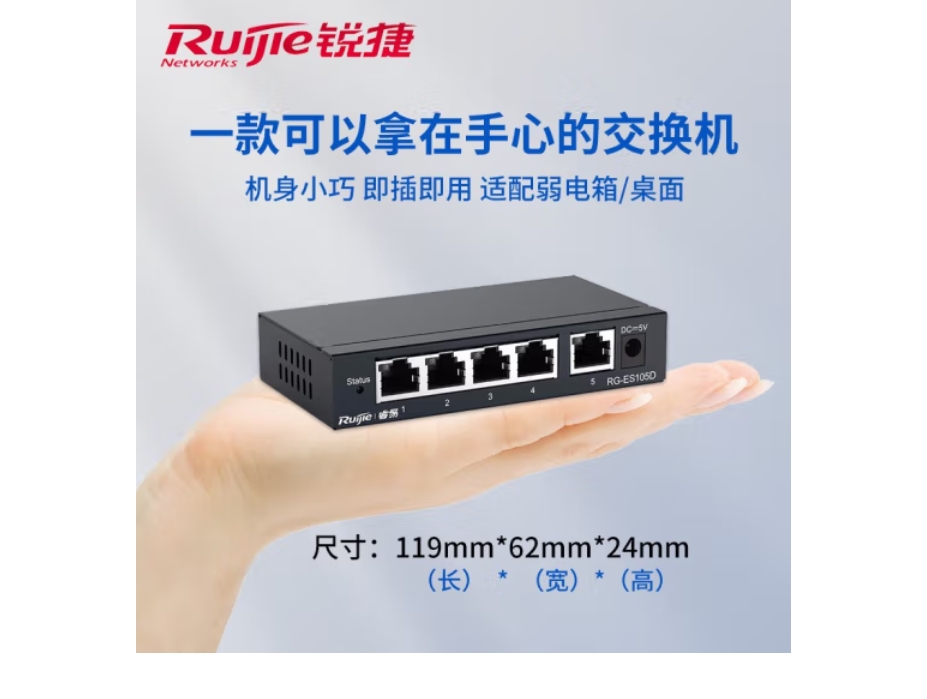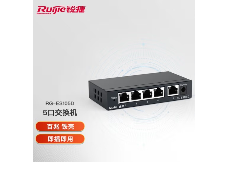 云栖漫心 锐捷(Ruijie)交换机千兆百兆非网管铁壳桌面型 企业级网络分流器 家用工程网线分线器 RG-ES105GD 5口千兆交换机