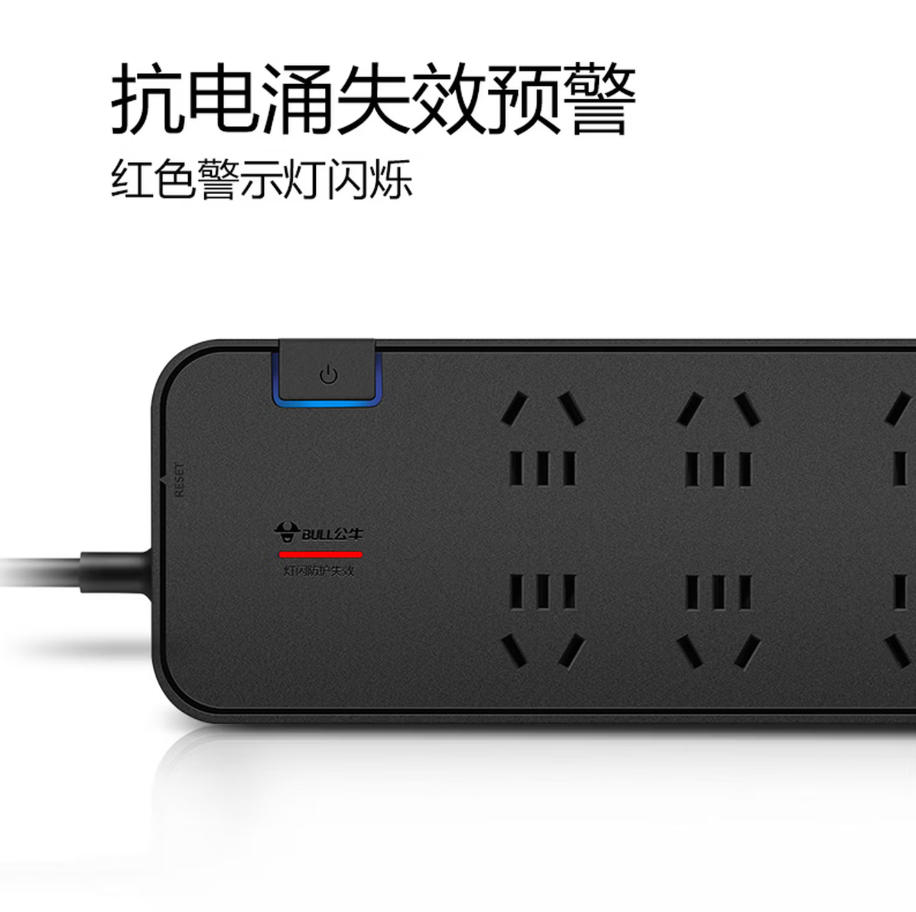 君航科技 公牛(BULL)抗电涌抗浪涌防雷电竞插座/插线板/插排/排插/接线板 6位总控全长3米 保护智能电器 GN-H3060
