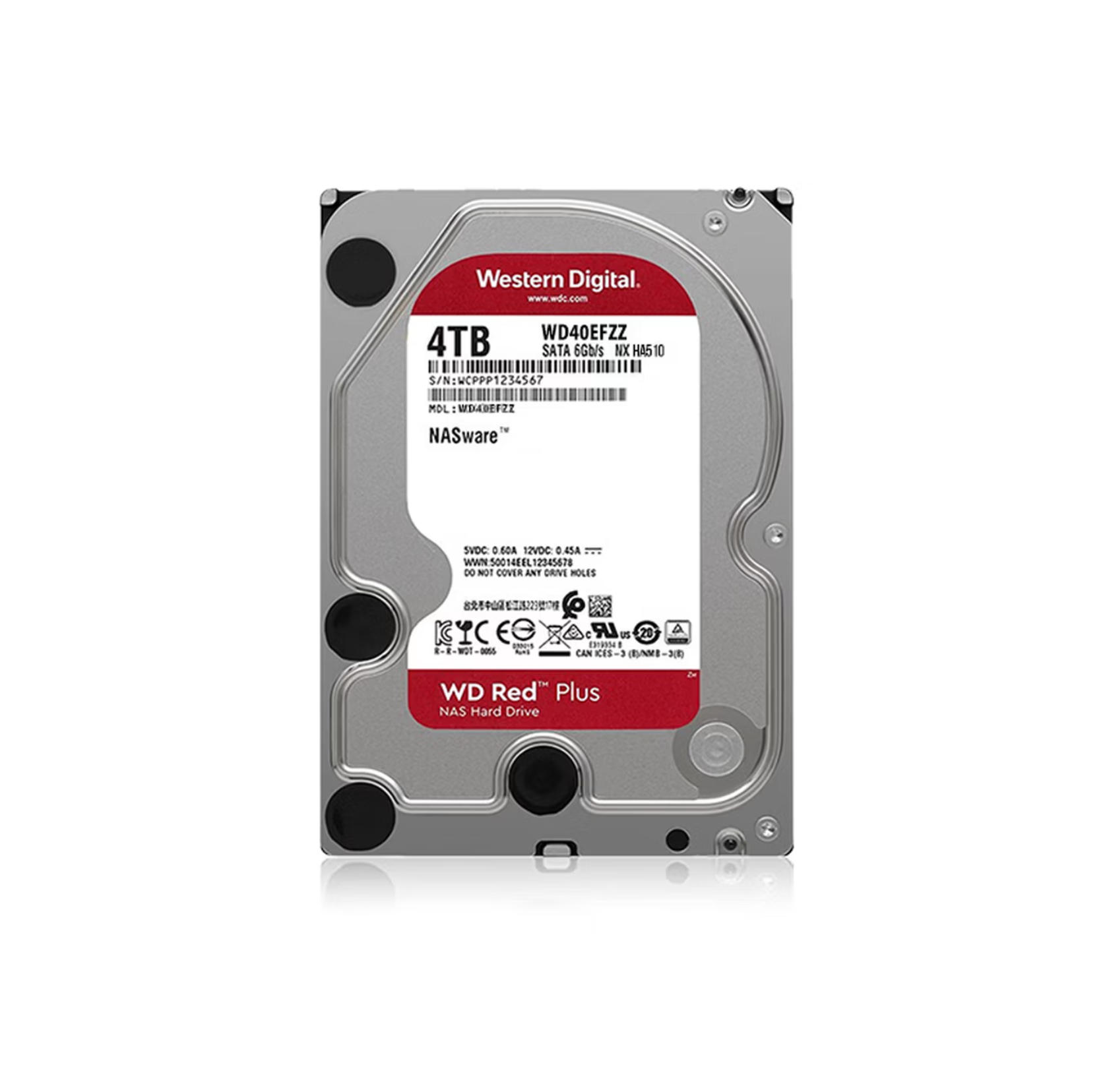 君航科技 西部数据(WD)NAS机械硬盘 WD Red Plus 西数红盘 4TB 5400转128MB SATA CMR垂直 NAS专用硬盘 3.5英寸 WD40EFZZ