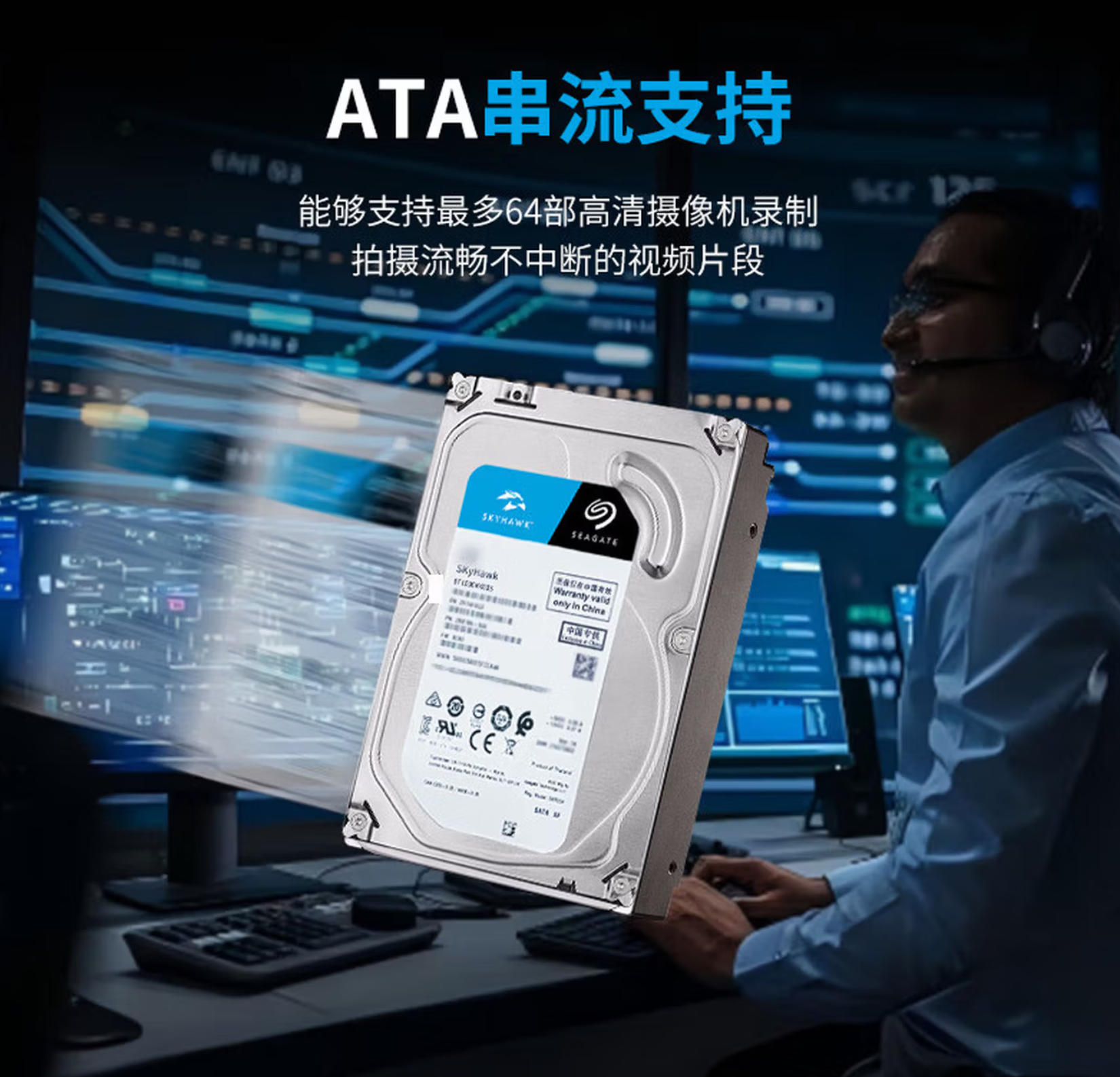 君航科技 希捷(SEAGATE)安防硬盘2TB 256MB SATA 垂直 机械 CMR 希捷酷鹰SkyHawk ST2000VX016