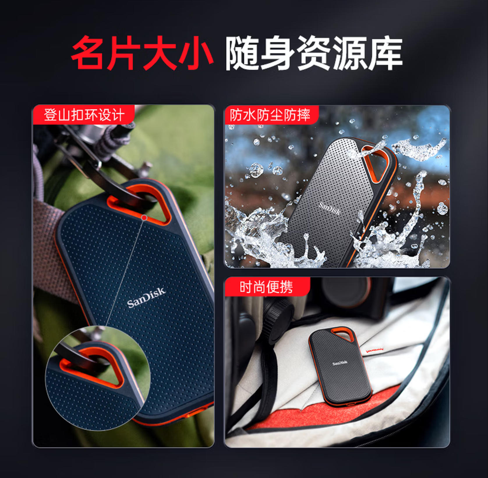 君航科技 闪迪(SanDisk)1TB Nvme移动固态硬盘(PSSD)E81至尊超极速Pro版SSD 读速2000MB/s 手机直连笔记本外接 三防保护