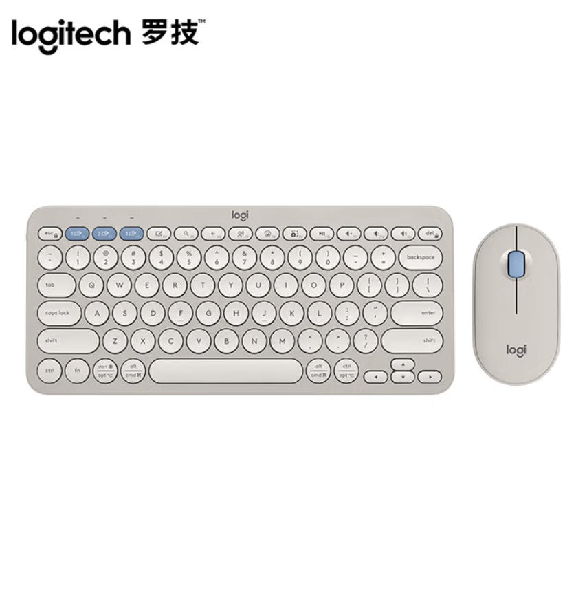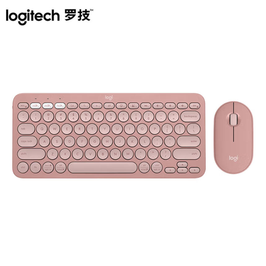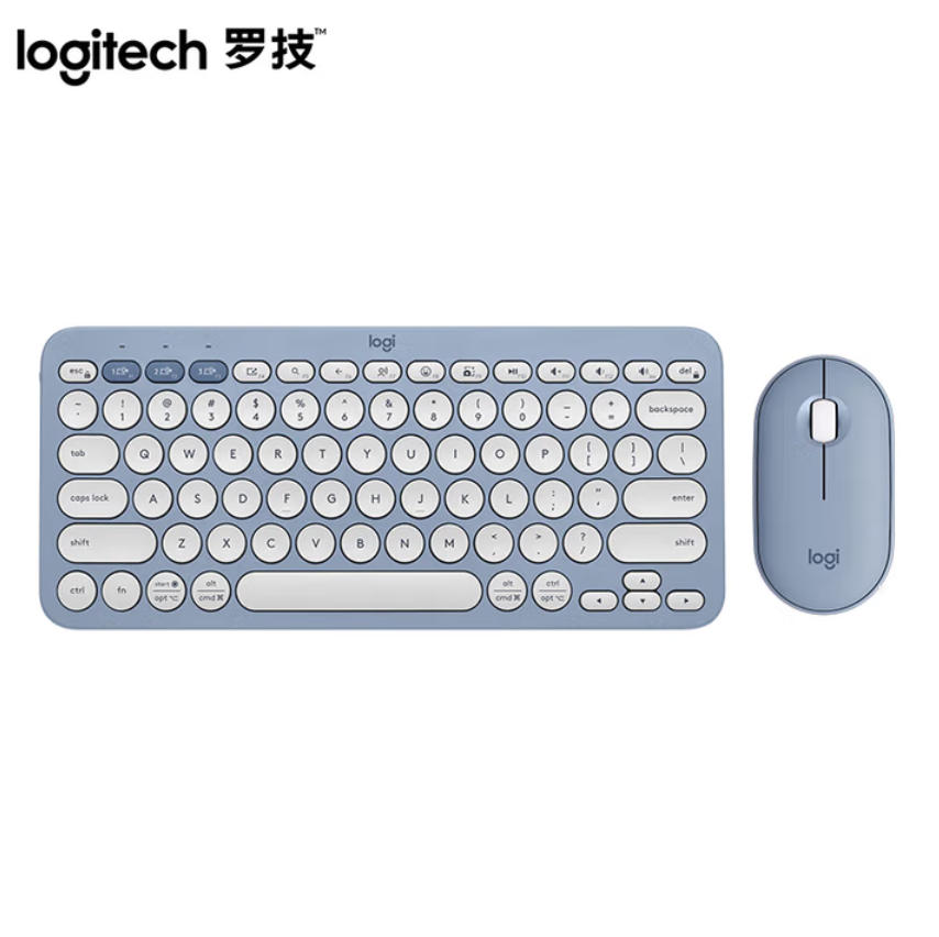 云栖漫心 罗技(Logitech)时尚系列 PEBBLE 2 COMBO键鼠套装 无线键鼠套装 双模连接 自定义按键 三台设备配对 烟云灰 云霞粉 品月蓝