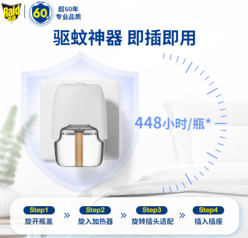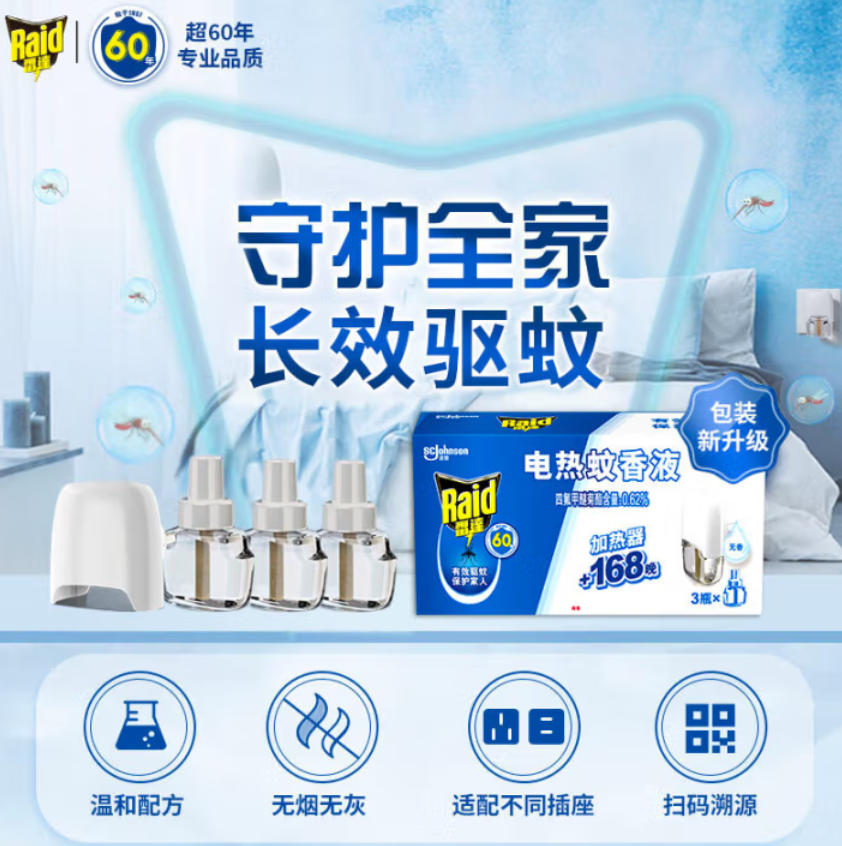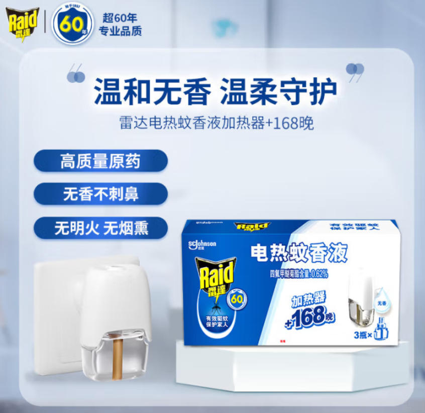 云杉生物 雷达(Raid) 电蚊香液 168晚3瓶装 +无线加热器 无香型