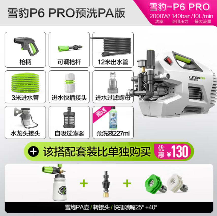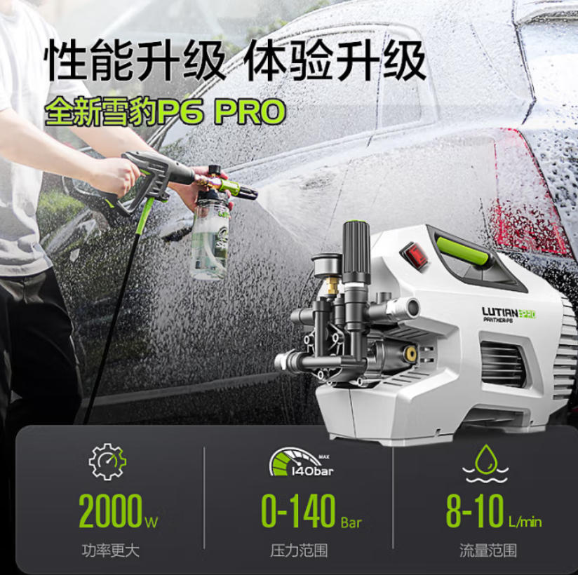 云杉生物 绿田(LUTIAN)高压 冲洗机 设备 仪器 清洗 洗车机 大功率感应220v 水枪 雪豹 P6proPA喷嘴版 2000W