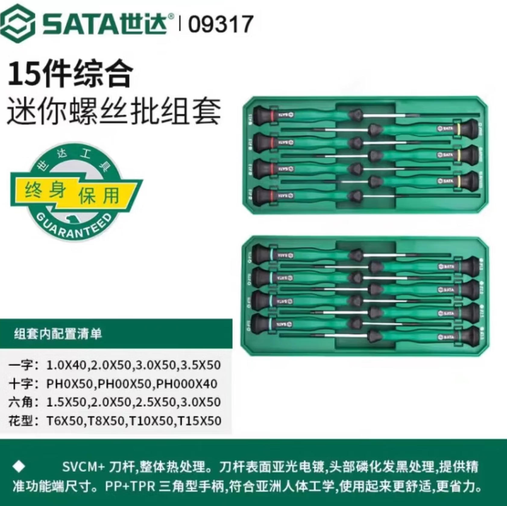 云杉生物 世达(SATA)综合微型螺丝批家用维修拆机螺丝批组套 15pcs 09317
