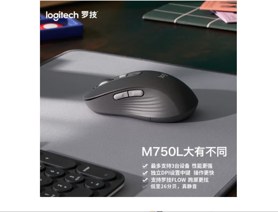 云栖漫心 罗技(Logitech)M750M M750L 通用版鼠标 无线蓝牙鼠标 静音鼠标 智能鼠标 对称鼠标 黑色 带Logi Bolt USB接收器